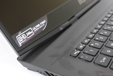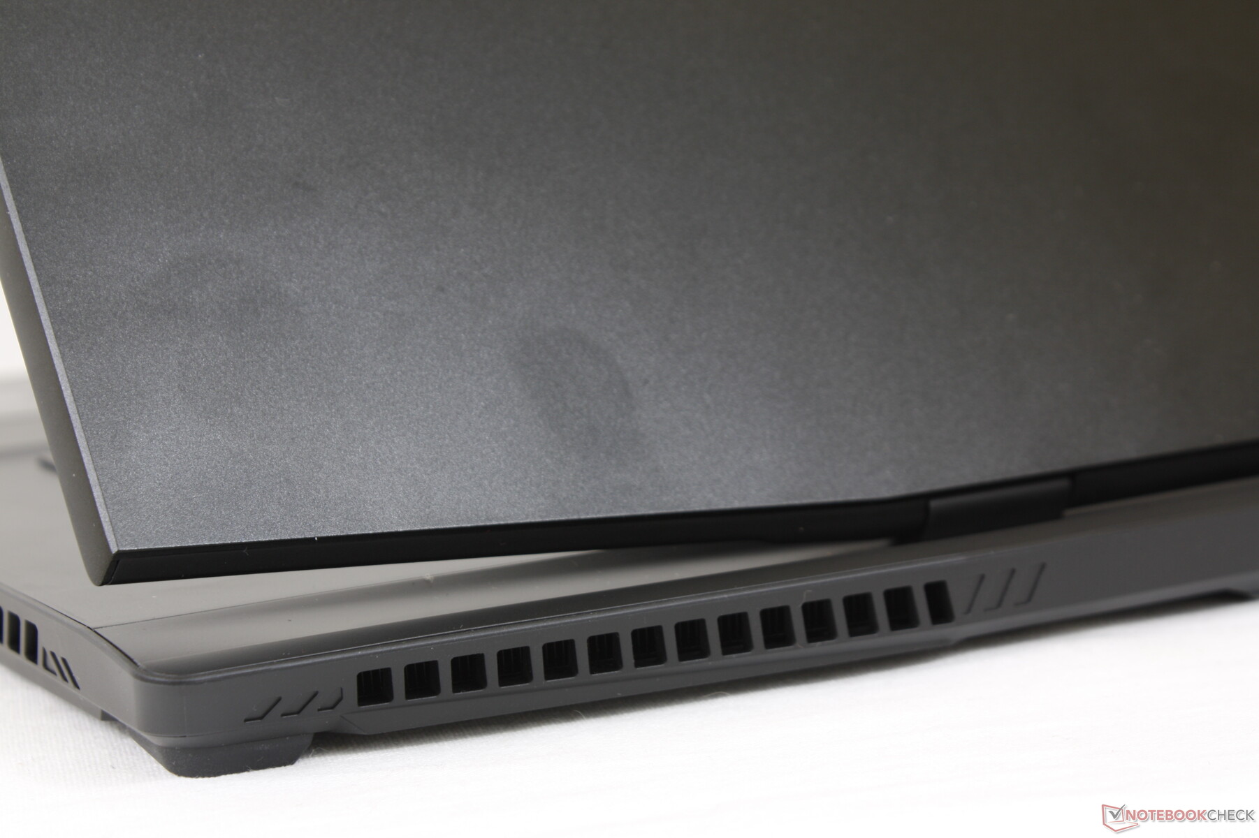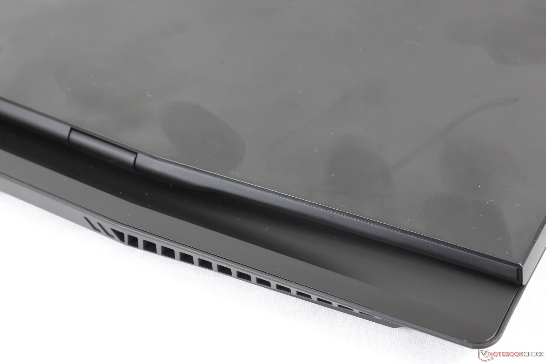 Einer unserer größten Kritikpunkte am GS76 war die Tatsache, dass dem dünneren und leichteren Gehäuse zu viel Performance zum Opfer gefallen ist. Das neu designte GS77 geht diesen Kritikpunkt an und führt, ähnlich wie schon das Alienware x17 oder MSIs hauseigene GT-Serie die nach hinten rausstehende Kühleinheit ein. Das Gehäuse ist zudem spürbar robuster und steifer als davor und sowohl Base als auch Display boten unseren Verwindungsversuchen erheblich mehr Widerstand als beim Vorgänger.