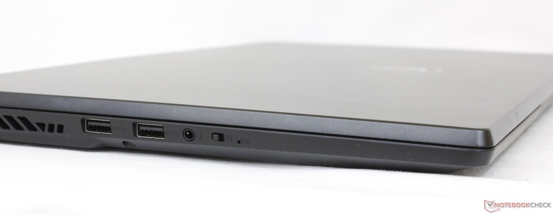 Die Ports sind im Vergleich zum Vorgänger unverändert geblieben, wurden jedoch umsortiert. Während die Rückseite des GS76 vollständig blank war sind die Anschlüsse des GS77 sehr ausgeglichen verteilt: 3 an der linken Seite, 3 an der rechten Seite und 3 an der Rückseite.
