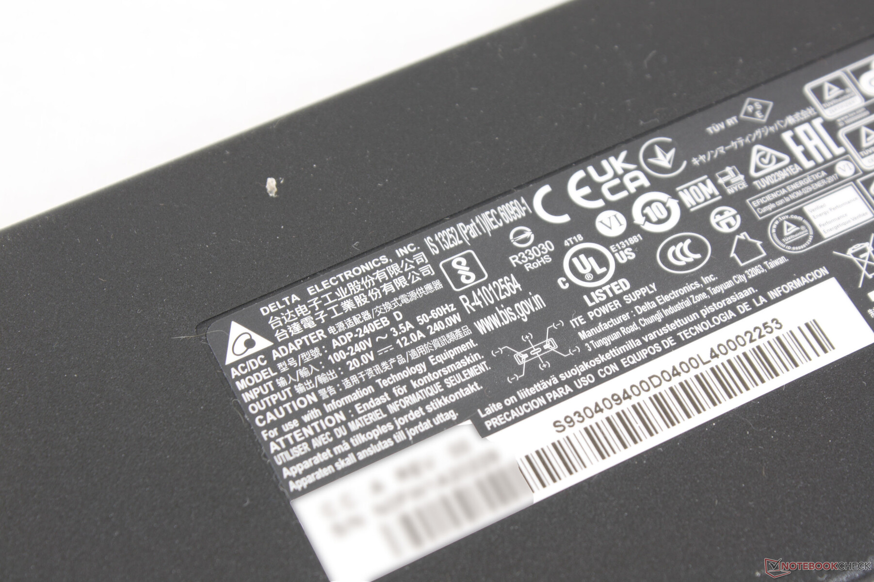 Standardmäßig wird das GS77 mit einem 240 W Netzteil ausgeliefert (Blade 17: 280 W). Trotzdem ist das Netzteil des GS77 mit 16.4 x 7.5 x 2.5 cm minimal größer als das des Blade 17 (16.4 x 7 x 2.5 cm).