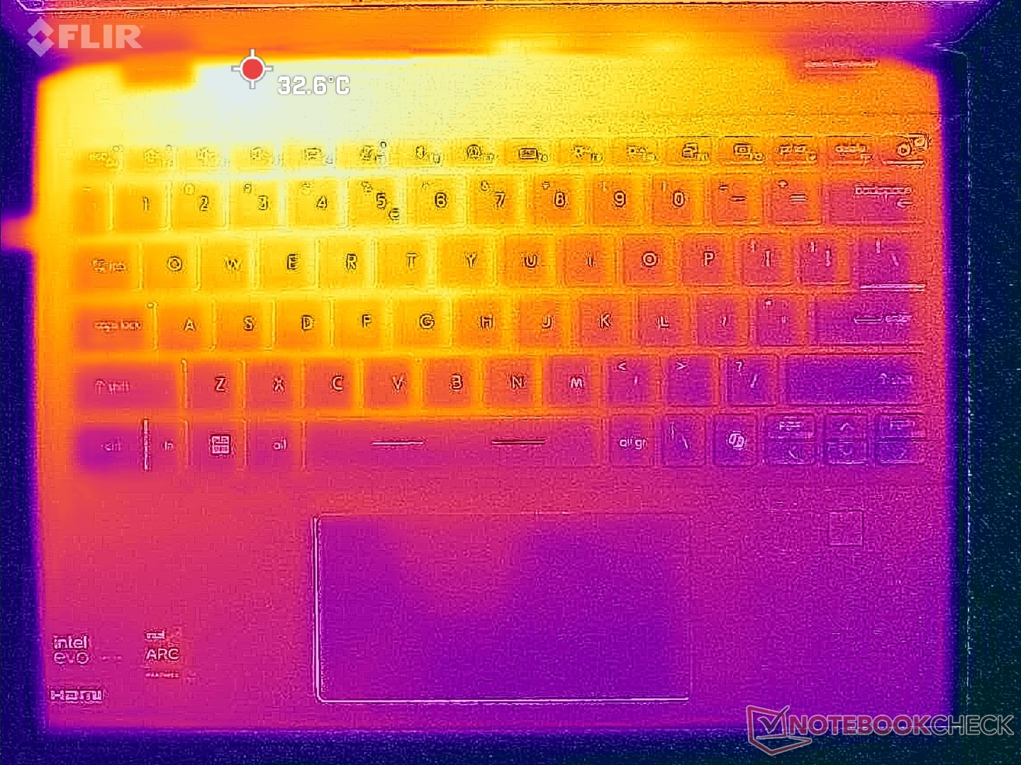 (+) Die Handballen und der Touchpad-Bereich sind mit gemessenen 28.8 °C kühler als die typische Hauttemperatur und fühlen sich dadurch kühl an.