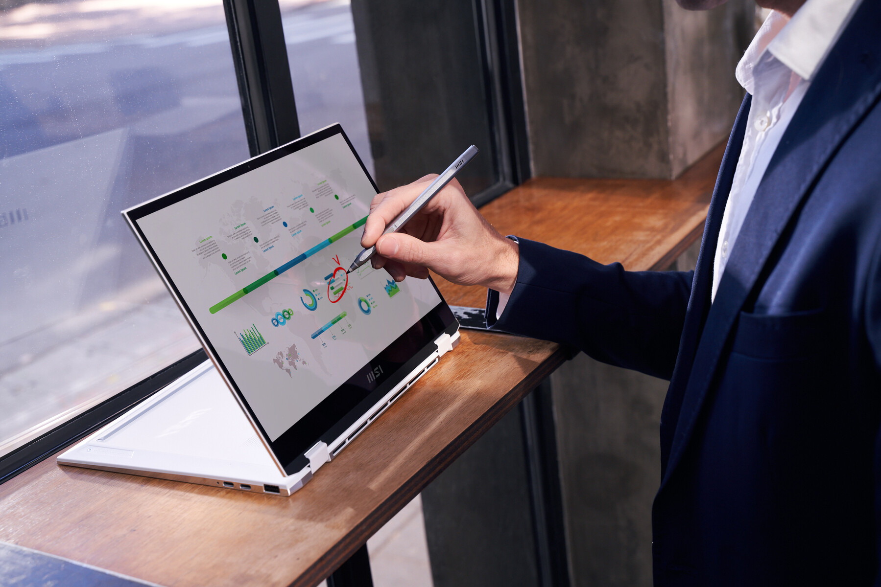 Das Summit E13 Flip Evo basiert auf Intels Evo-Plattform und bietet die ungebremste Performance von Intels 11. Generation Tiger Lake, als erster Business-Laptop überhaupt superschnelle Konnektivität dank Wi-Fi 6E, eine Akkulaufzeit von 20 Stunden, eine extrem niedrige Geräuschentwicklung und ein vollständiges produktivitätssteigerndes Ökosystem aus Zubehör wie etwa dem MSI Pen.