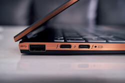 Das Summit E13 Flip Evo stellt zudem eine hervorragende Auswahl an Anschlüssen zur Verfügung, etwa zwei Thunderbolt-4-USB-4-Typ-C-Ports mit DisplayPort und Power Delivery, die beide volle 40 Gbit/s Übertragungsgeschwindigkeit für maximal vielseitige Konnektivität bieten. Das Summit E13 Flip Evo bietet außerdem auch einen MicroSD-Kartenleser.