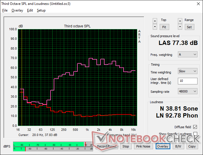 (+) | Die Lautsprecher können relativ laut spielen (84.7 dB)