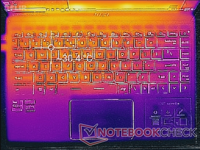 (+) Die Handballen und der Touchpad-Bereich erreichen maximal 34.2 °C und damit die typische Hauttemperatur und fühlen sich daher nicht heiß an.