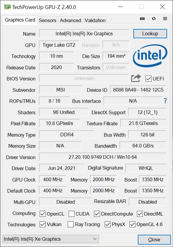| 82.5 % v7 (old) | 12 / 2020 | MSI Prestige 14 Evo A11M-005 i7-1185G7, Iris Xe G7 96EUs | 1.2 kg | 16 mm | 14.00" | 1920x1080 | |