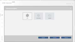 Zwischen den vier Leistungsprofilen (Hohe Leistung, Ausgeglichen, Silent Modus, Super Battery) des Notebooks kann per vorinstallierter MSI-Center-Pro-Software (siehe Bilder) oder "F7"-Taste gewechselt werden. Wird - wie in unserem Fall - die übergeordnete, AI-basierte "Smart Auto"-Funktion genutzt, wählt das MSI Center automatisch jeweils das zum Szenario passende Profil. Die Profile beeinflussen nur die CPU-Leistung, nicht die GPU-Leistung.