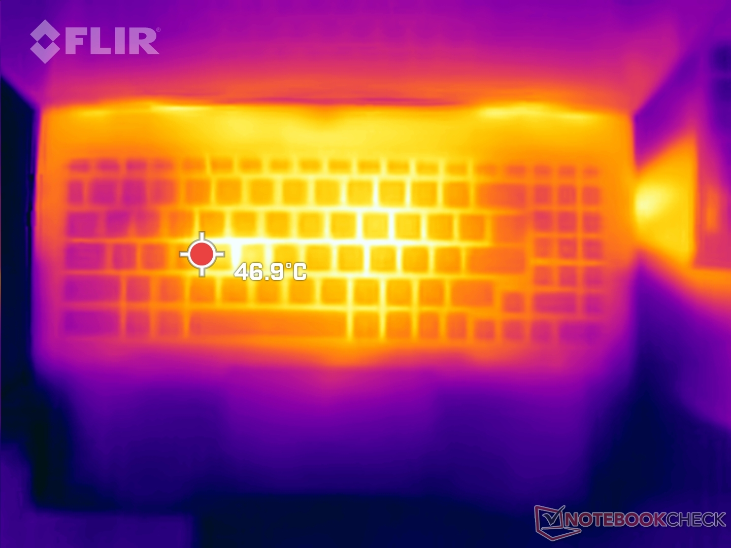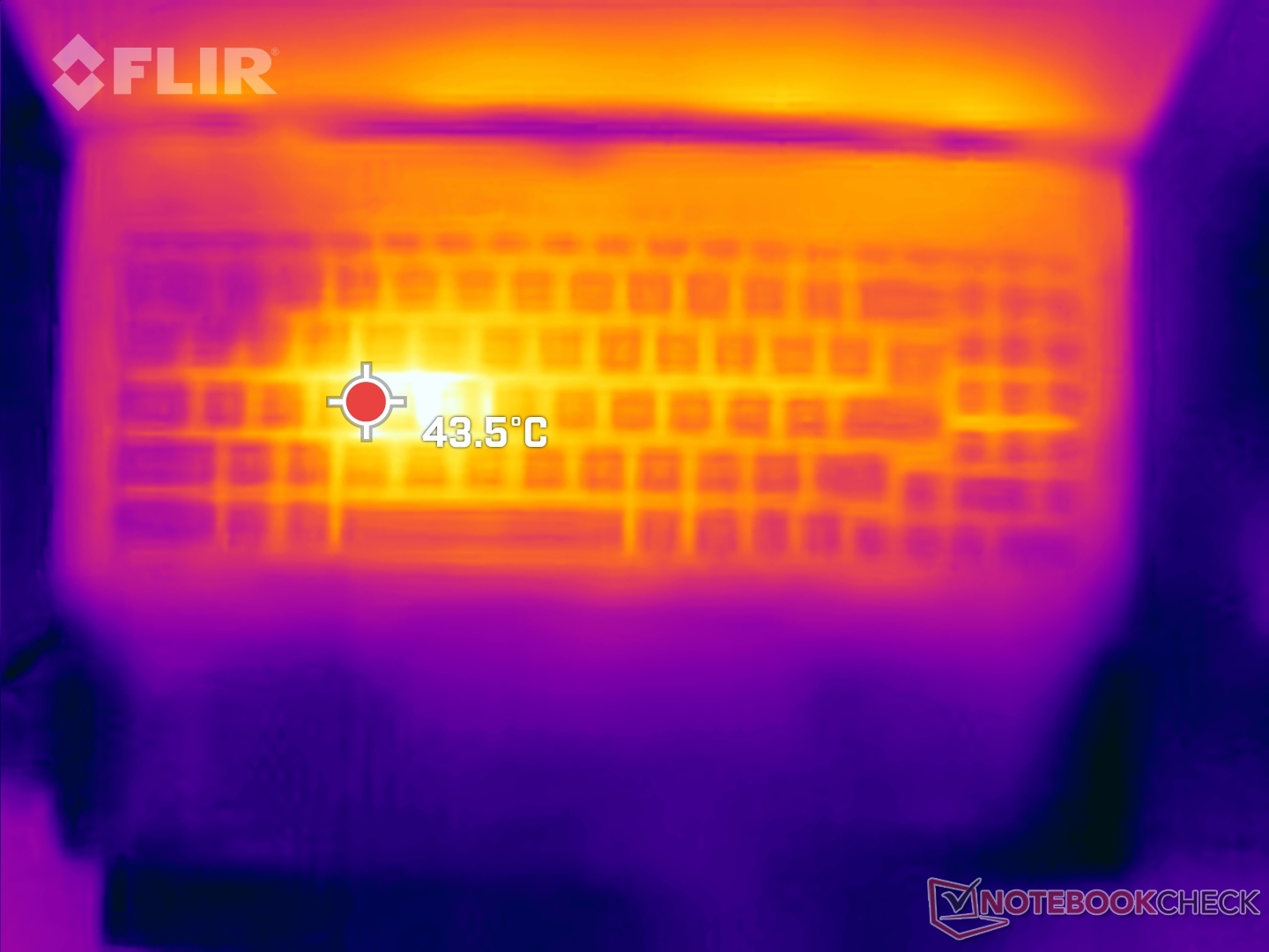 (+) Die Handballen und der Touchpad-Bereich sind mit gemessenen 31.8 °C kühler als die typische Hauttemperatur und fühlen sich dadurch kühl an.