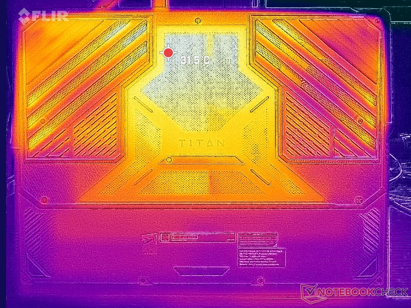 Überraschenderweise sind die Oberflächentemperaturen hier etwas wärmer als beim Unibody Razer Blade 18, trotz der dickeren Bauweise des MSI. Mit aktivem bzw. inaktivem Cooler Boost erreichen die Hotspots knapp über 41 °C bzw. 37 °C, verglichen mit 35 °C bis 40 °C beim Razer. Die heißen Stellen befinden sich glücklicherweise auf der Rückseite des Systems, wo es unwahrscheinlich ist, dass Hände und Finger das System berühren. Die Handballenablagen oder Tasten empfanden wir beim Spielen nie als unangenehm warm.