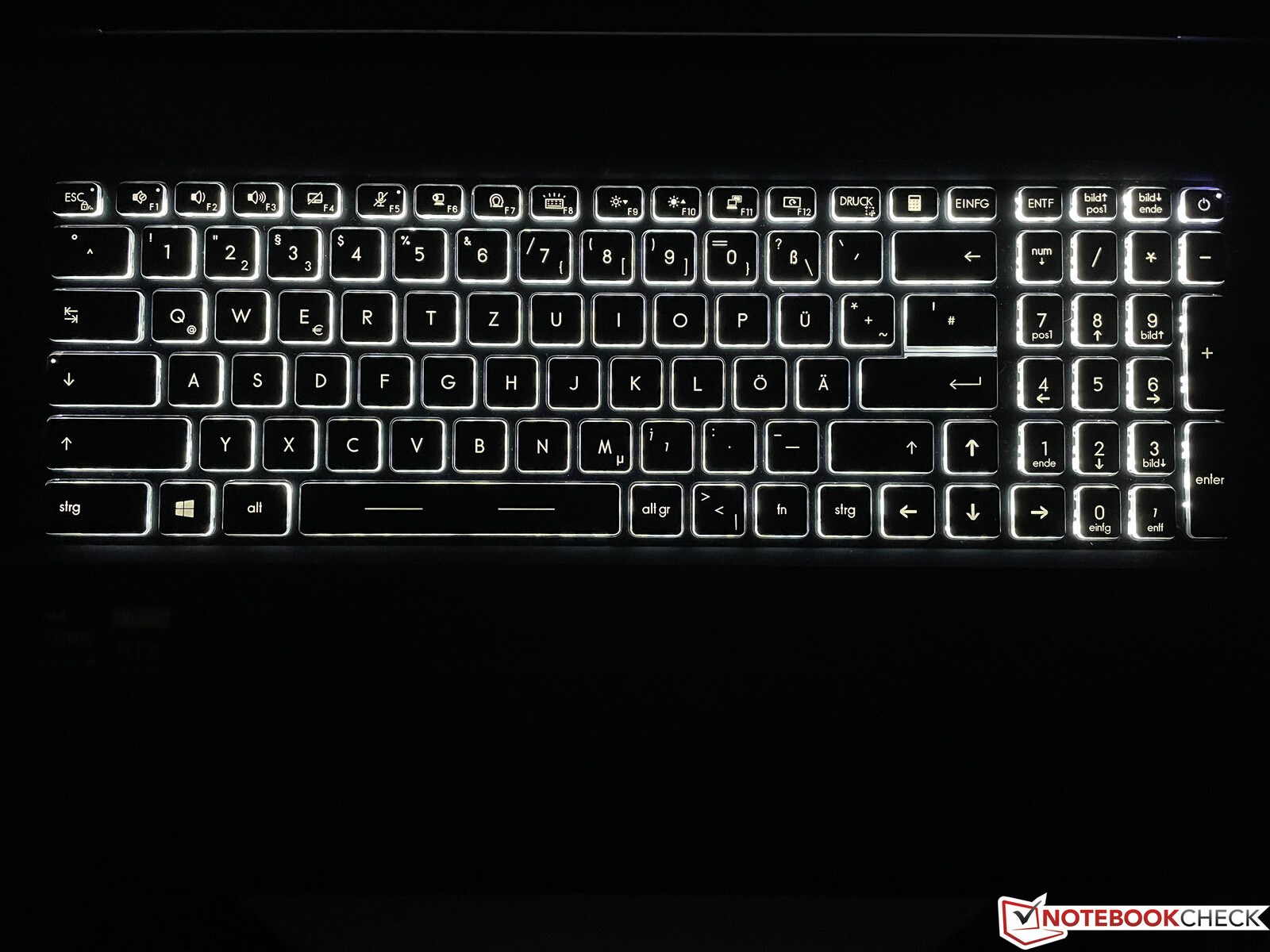 Wie bei den Gaming-Geschwistern kommt auch beim Workstation-Ableger WE76 eine Tastatur von SteelSeries zum Einsatz. Allerdings wird auf die farbige Hintergrundbeleuchtung verzichtet, stattdessen gibt es nur Weiß. Die Tasten bieten vergleichsweise viel Hubweg und das Tippgefühl ist sehr gut und kann es locker mit den besten Tastaturen der etablierten Workstation-Konkurrenz aufnehmen. Zudem ist auf der rechten Seite ein vollwertiger Nummernblock integriert, dessen Tasten zwar etwas schmaler ausfallen, was in der Praxis aber kein Problem darstellt.