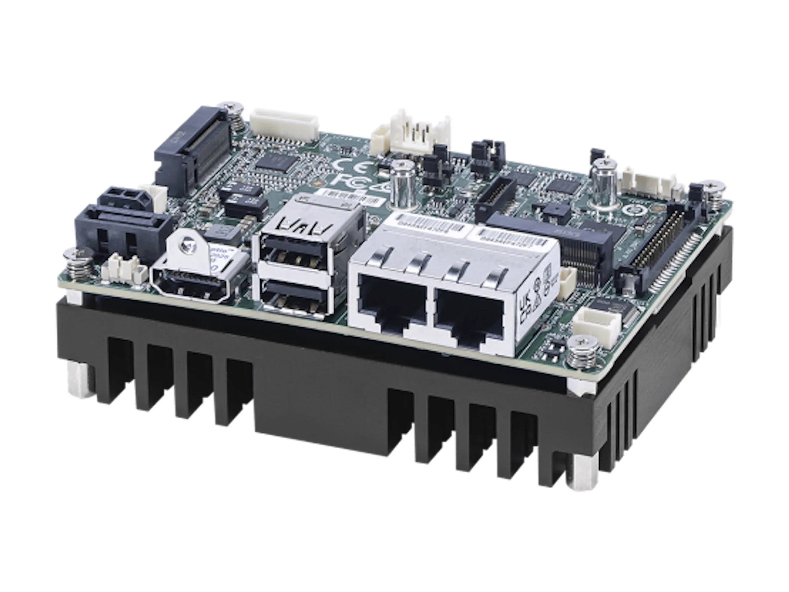 Je nach gewählter Modellversion kommt ein bis zu 16 Gigabyte großer LPDDR5-Arbeitsspeicher zum Einsatz, wobei dieser mit einer Taktfrequenz von bis zu 4.800 MHz arbeiten kann. Für die Installation von Massenspeichern steht auch einmal SATA 3.0 bereit, dazu kommen mehrere M.2-Slots, über die sich aber auch Erweiterungsplatinen anschließen lassen. Die 101 x 73 Millimeter große Platine wird mit einer Spannung von 12 Volt mit elektrischer Energie versorgt. Für die Anbindung verschiedener Zubehörteile oder externer Massenspeicher stehen zweimal USB 3.2 bereit.
