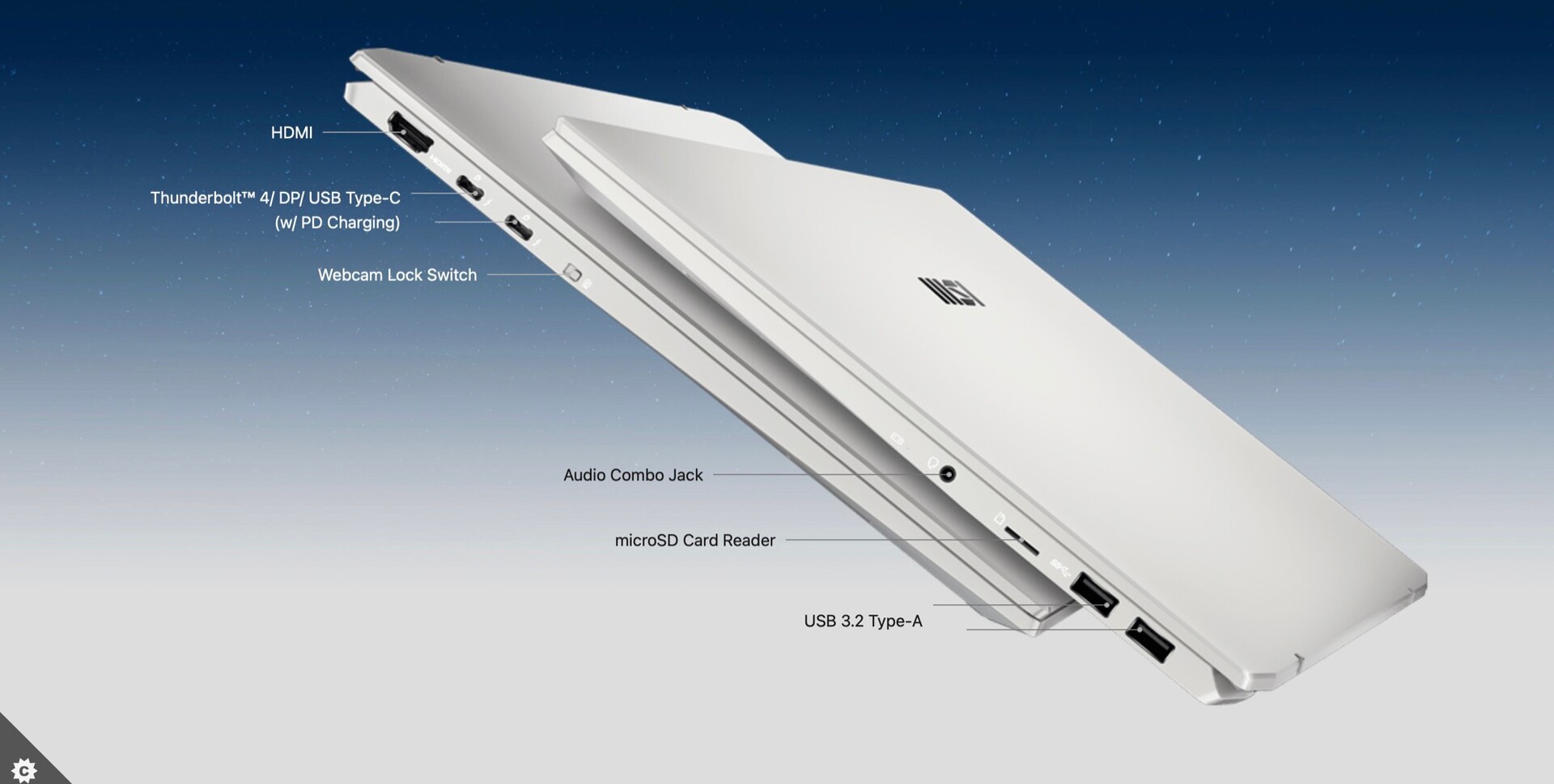 MSI bietet auch eine "Evo"-Version des Prestige 16 an, die auf die Mini-LED-Hintergrundbeleuchtung verzichtet, und stattdessen auf ein 165 Hz schnelles IPS-Panel mit einer Auflösung von 1.920 x 1.200 Pixel setzt. Die Tastatur besitzt eine weiße Beleuchtung. Das Notebook besitzt eine 1.080p-Webcam samt Infrarot-Kamera für den Windows-Login per Gesichtserkennung, einen Fingerabdrucksensor und einen 82 Wh Akku, der über USB-C geladen wird. Neben zweimal Thunderbolt 4 (USB-C) bietet das Prestige 16 auch zweimal USB-A 3.2 Gen 2 und einmal HDMI.