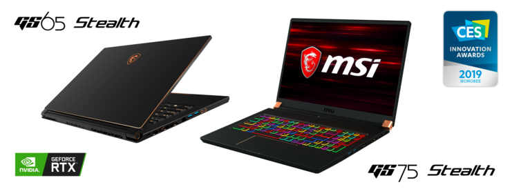 Im Falle von gewünschter größtmöglicher Mobilität bietet MSI die gleiche Ausstattung im 15,6 Zoll großen MSI GS65 Stealth an, welches auf der CES 2019 in Las Vegas mit dem CES Innovation Award ausgezeichnet wurde. Das GS65 hat ein wichtiges Design-Update erhalten und verfügt nun, wie das GS75, über ein TouchPad mit Glas-Veredelung. Als Ausstattungsvariante kann sowohl beim GS75 Stealth als auch beim GS65 Stealth auf verschiedene GPUs zurückgegriffen werden. Als Grafikeinheit sind die neuesten Turing-GPUs RTX 2060 mit 6 GB, RTX 2070 Max-Q mit 8 GB und RTX 2080 Max-Q mit ebenfalls 8 GB DDR6 Videospeicher verfügbar.