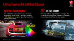 Das 17,3 Zoll große 144-Hz-IPS-Panel bietet es ein immersives und realistisches Gaming-Erlebnis. Das 144-Hz-Display verfügt über eine extrem niedrige Reaktionszeit von nur 3 Millisekunden und garantiert damit ein stets gestochen scharfes Bild, auch bei sehr schnellen Spielsequenzen. Zudem kann der Bildschirm annähernd 100 Prozent des sRGB-Farbraumes abdecken und damit eine realistische Farbwiedergabe gewährleisten. Das Display mit IPS-Technologie sorgt mit besonders großzügigen Blickwinkeln für ein stets perfektes Bild, egal in welcher Position man sich vor dem Bildschirm befindet.
