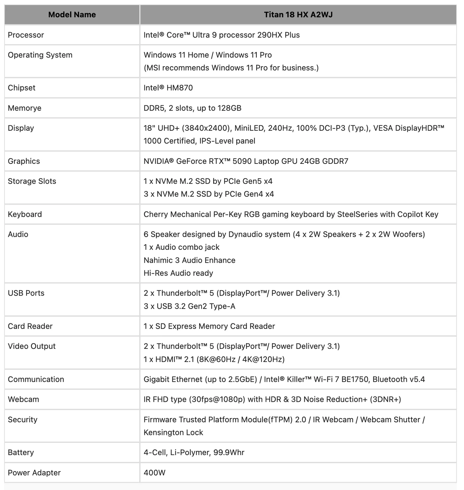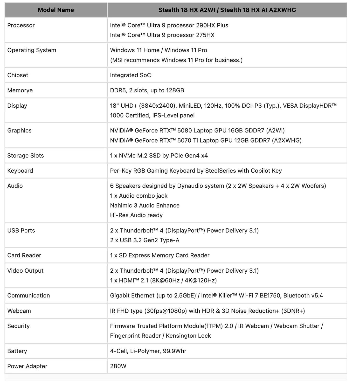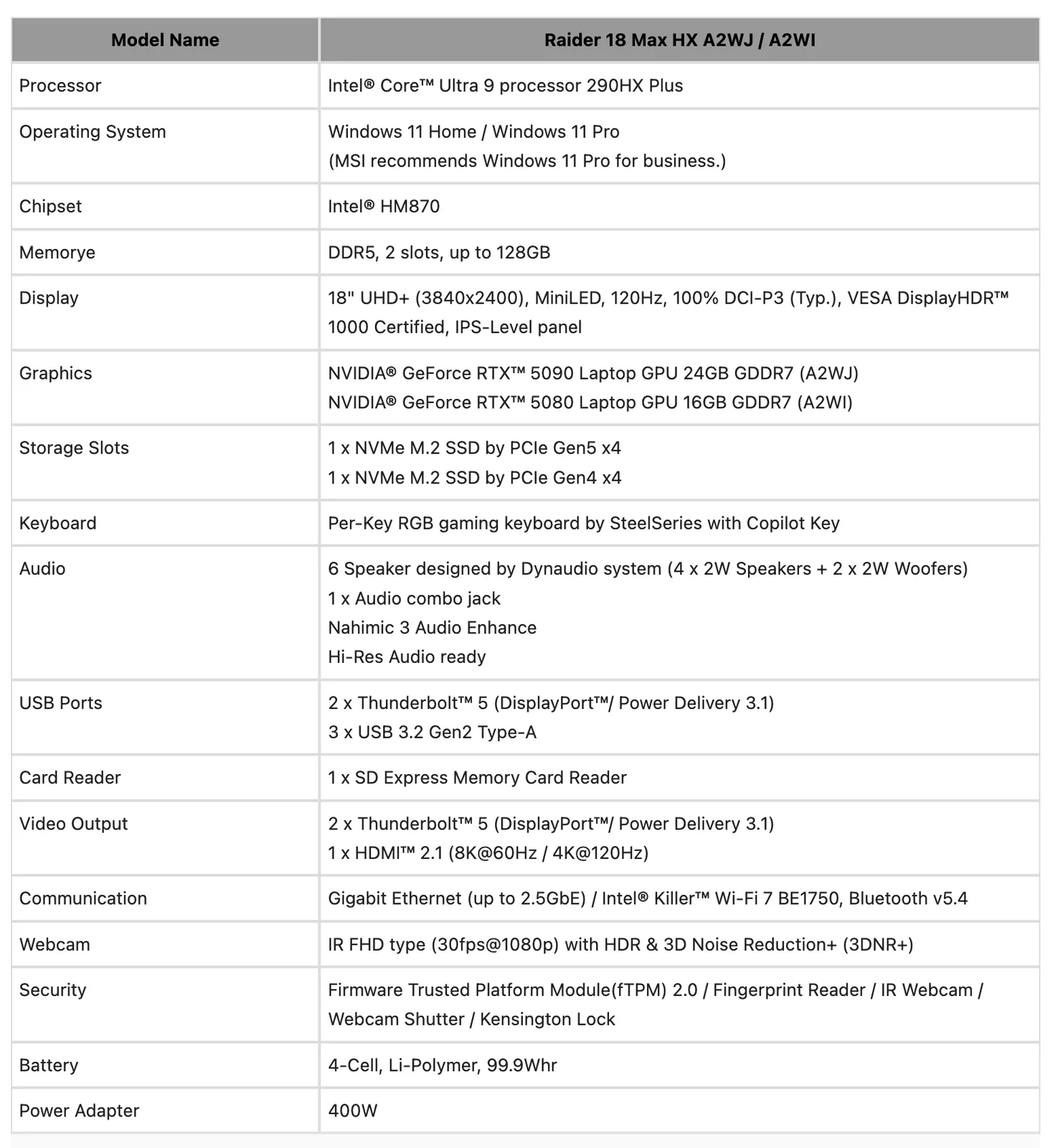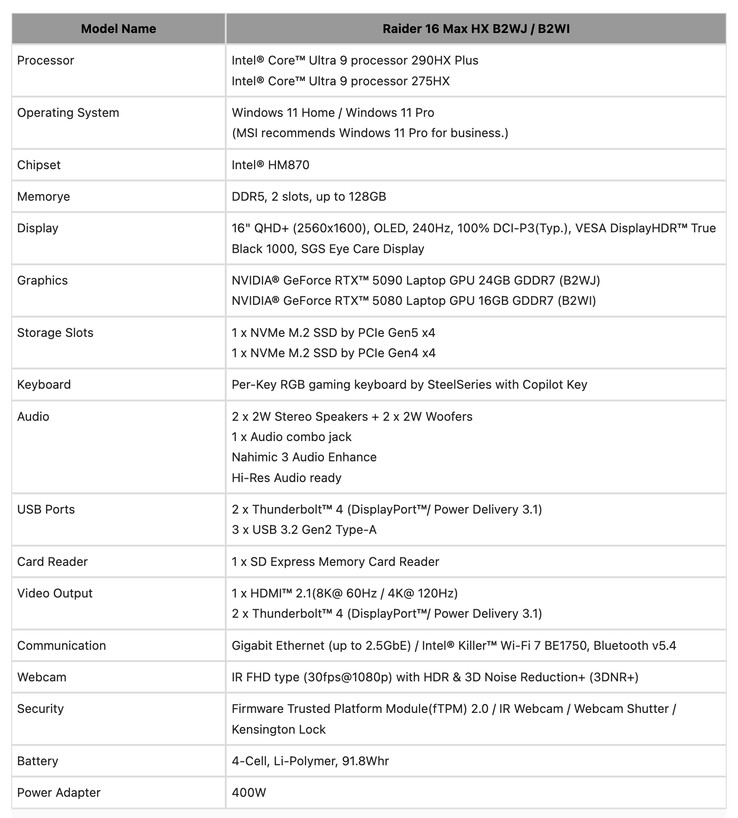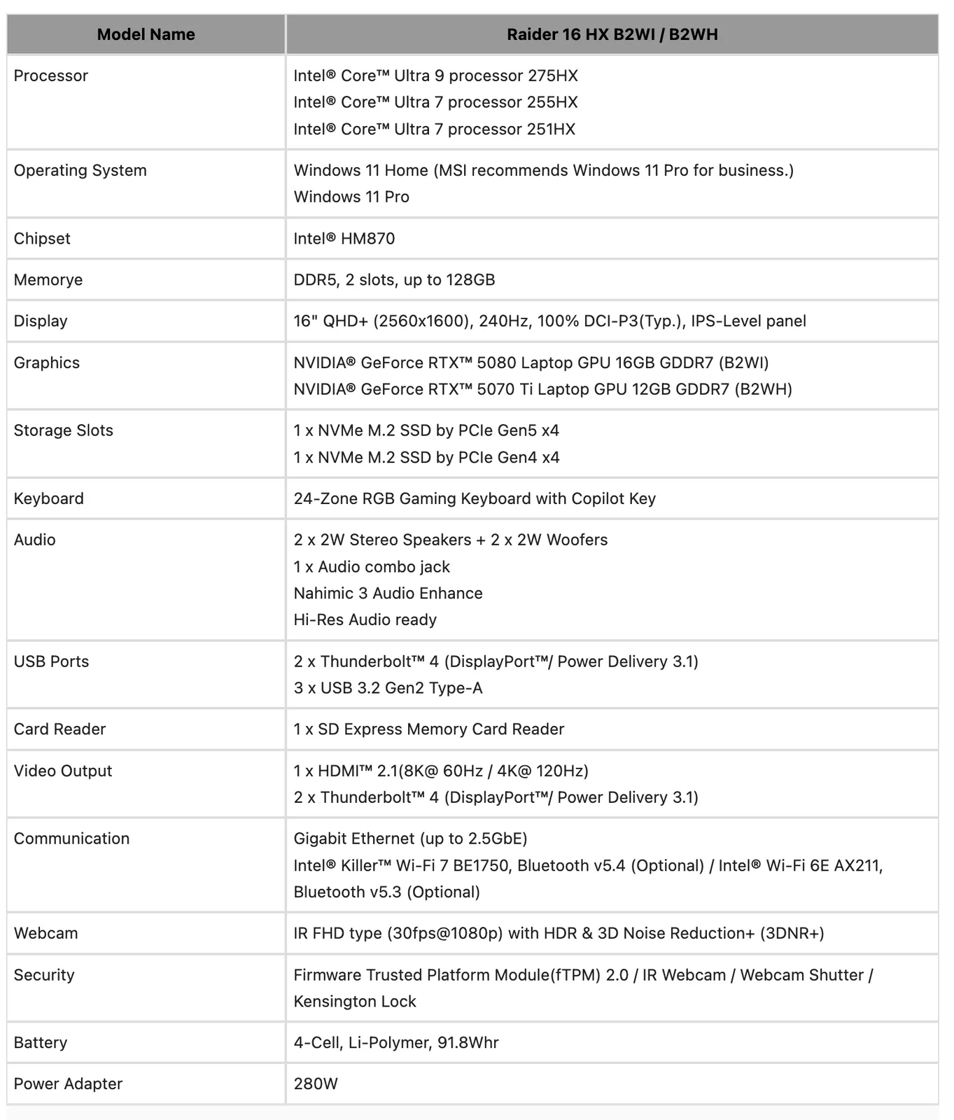 Jetzt zieht MSI nach und erweitert seine Raider-, Stealth- und Titan-Serie um acht neue Laptops. Konkret hat das Unternehmen die folgenden Modelle vorgestellt, die auf dem Core Ultra 9 290HX Plus basieren: