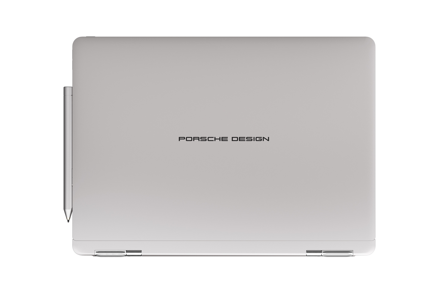 Das multifunktionale Gerät aus hochwertigem Aluminium präsentiert sich in einem CNC-gefrästen Gehäuse mit matt eloxierter Oberfläche in edlem Finish. Der Porsche Design Schriftzug auf der Tablet-Oberseite sowie am unteren Bildschirmrand fügt sich dezent in das Gesamtdesign ein. Mit dem vom Studio F. A. Porsche grundlegend neu konstruierten, patentierten Drehgelenk wird die substantielle Detachable-Funktionalität eines 2-in-1 um eine 360°-Beweglichkeit der Tablet-Einheit ergänzt.
