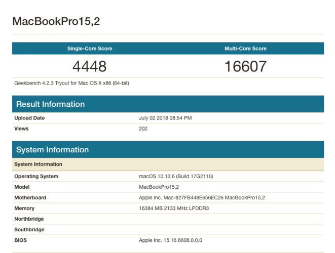 Apple setzt im MacBook Pro traditionell auf Intel-Chips mit einer TDP von 15 Watt (13 Zoll Modell ohne TouchBar), 28 Watt (13 Zoll Modell mit Touch Bar) bzw. 45 Watt (15 Zoll Modell). Gerade die bei PC-Herstellern nicht gerade beliebte 28 Watt-Klasse ist nun in einem Benchmark aufgetaucht: Der angeblich in einem MacBook Pro verbaute Intel Core i7-8559U erzielt äußerst respektable Werte.