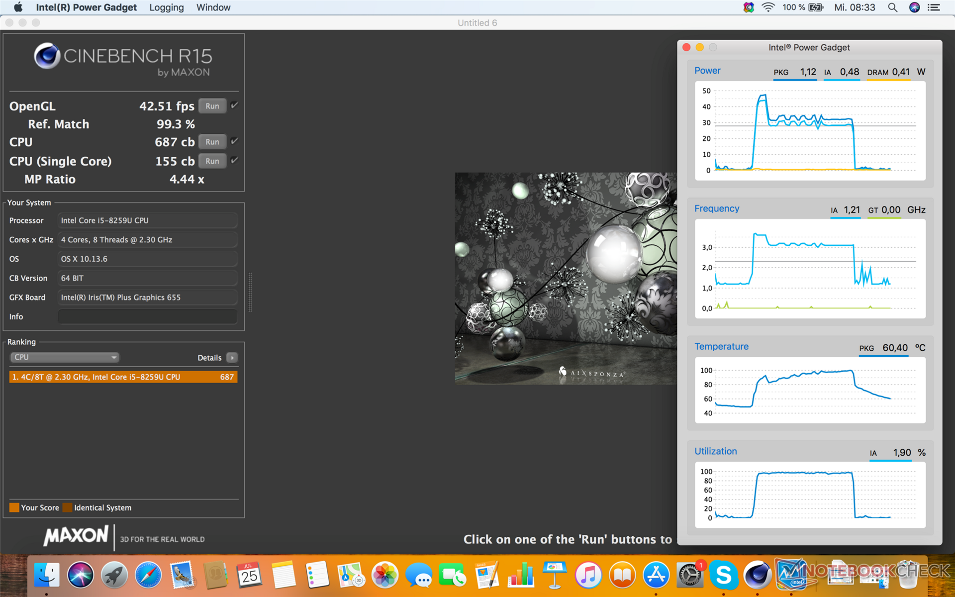 Das kleine MacBook Pro 13 2018 profitiert am deutlichsten von dem Software-Update. Die Schwankungen des Taktes fallen nun deutlich geringer aus und wir sehen konstant mehr als 3 GHz sowie einen Verbrauch von mehr als 30 Watt. Auch bei der dauerhaften Belastung bleiben die Ergebnisse nach einem kurzen Abfall im 2. Durchgang stabil bei mehr als 680 Punkten und damit auch wenige Prozentpunkte vor unserer eigenen Lösung mit der festgesetzten TDP.