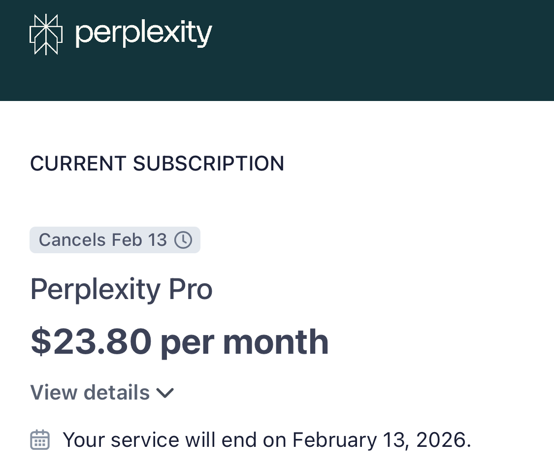 Am 29. Januar 2025 hat die Deutsche Telekom eine Aktion für das kostenlose Nutzen von Perplexity Pro gestartet. Das über das Treueprogramm Magenta Moments verfügbare Abo wurde für 12 Monate angeboten. Die ersten Abos sollten nun also langsam auslaufen. Bei uns ist es der 13. Februar 2026.
