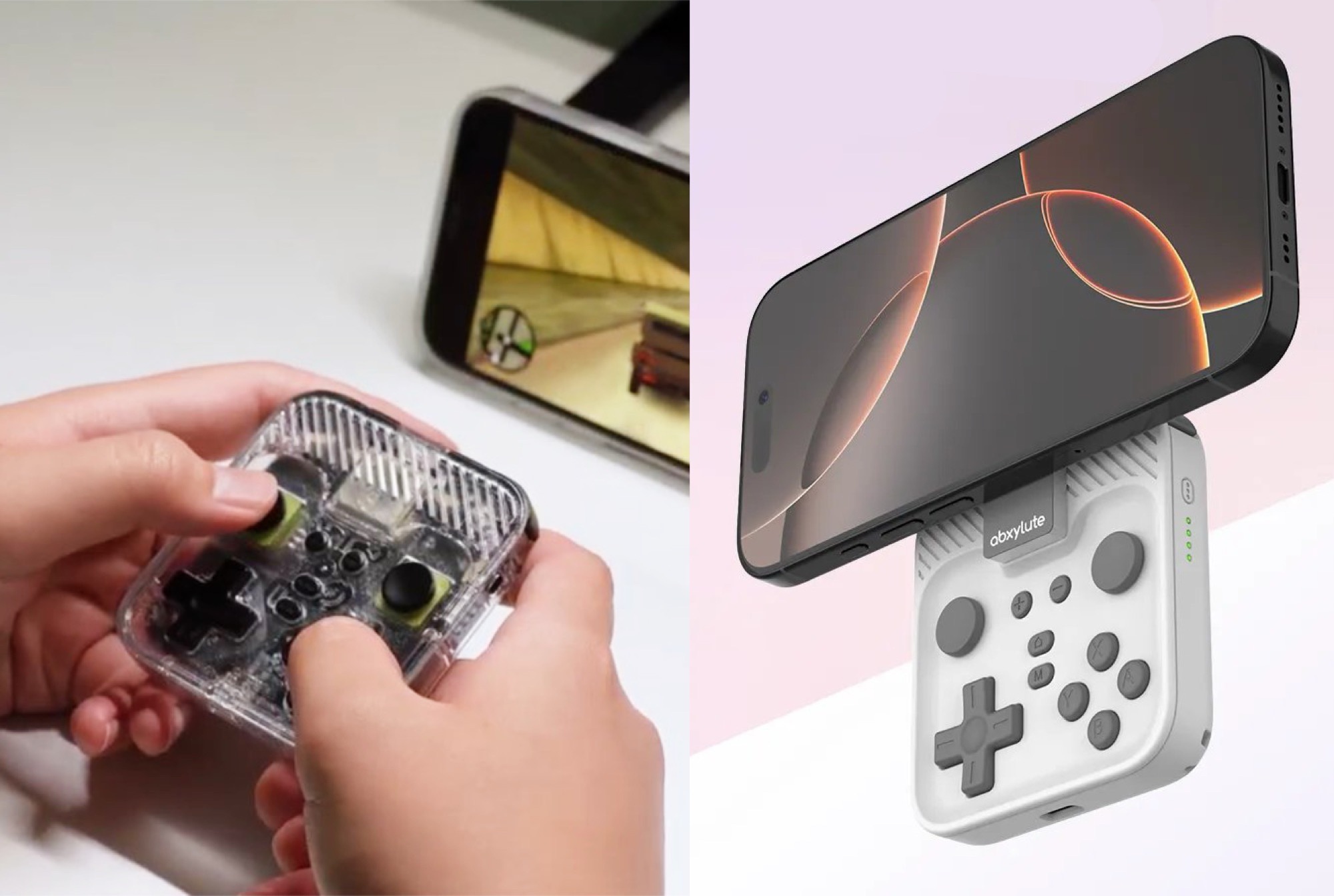 Abxylute nutzt die Gelegenheit, um ein magnetisches Gamepad zu entwickeln. Das neue Abxylute Snap kann wahlweise als ausgesprochen kompakter Bluetooth-Controller verwendet werden, oder aber in Kombination mit einem Magnetring ein Smartphone im Querformat halten, wodurch die Kombination ein wenig an das innovative LG Wing erinnert.