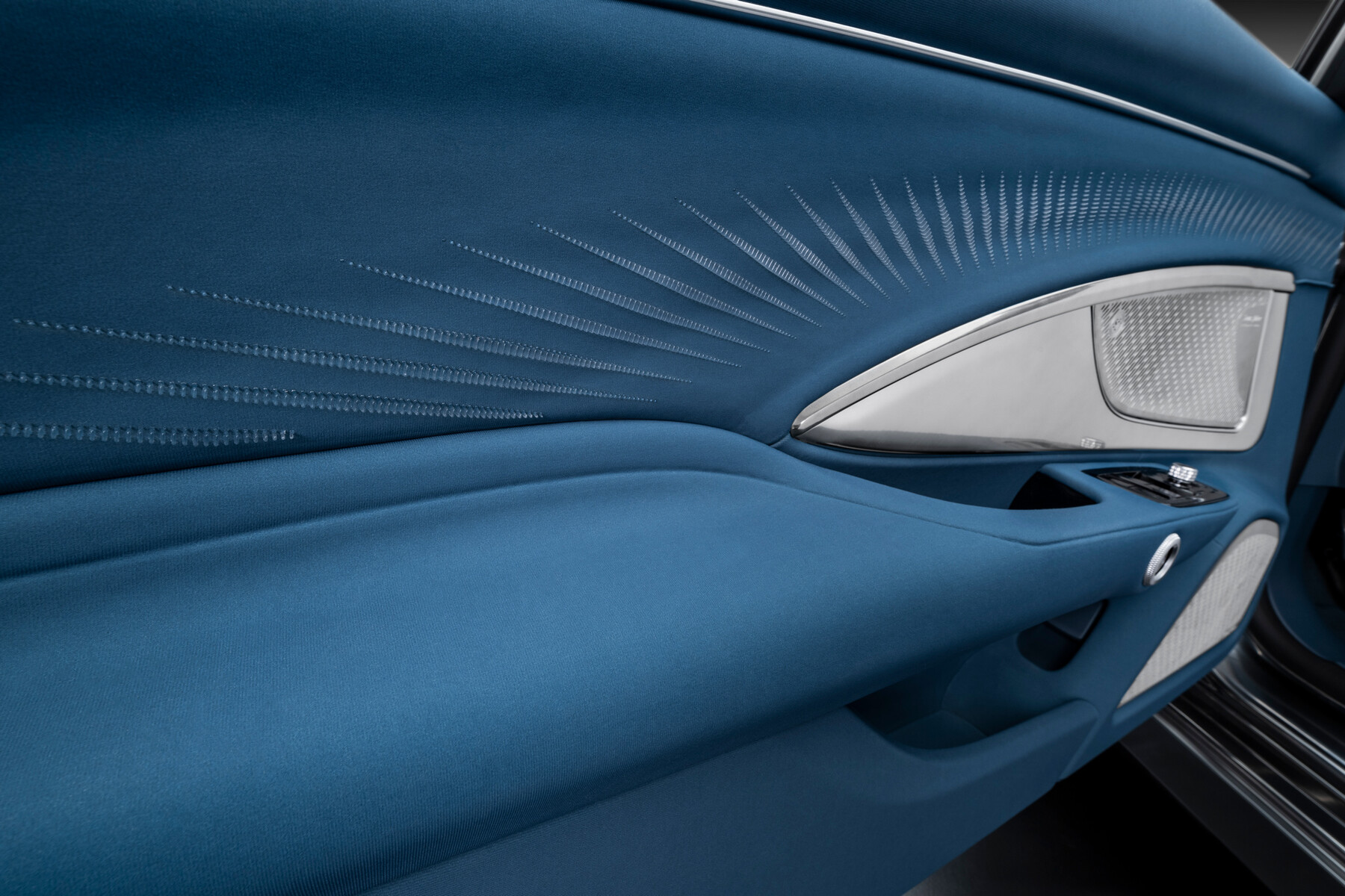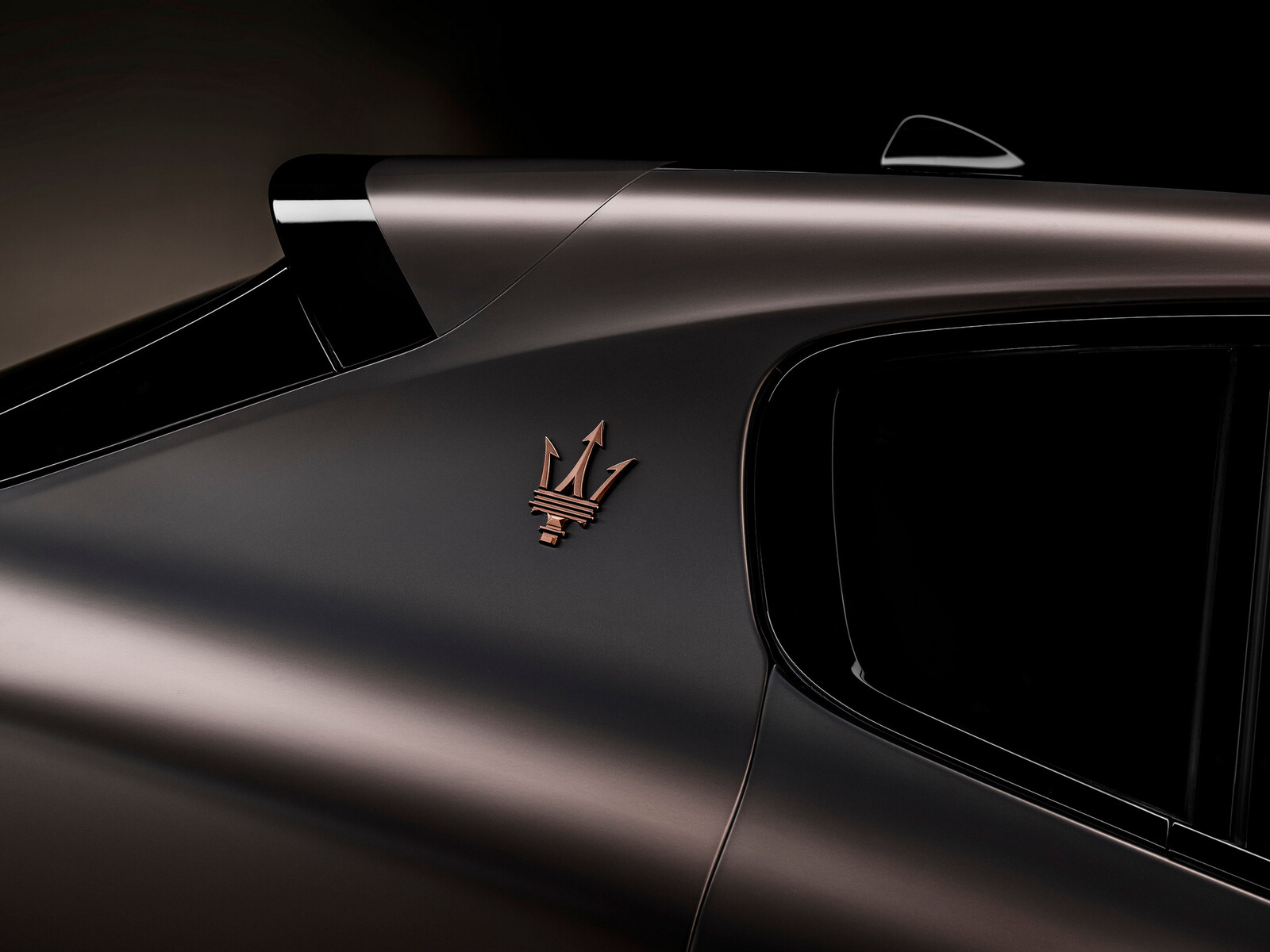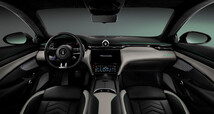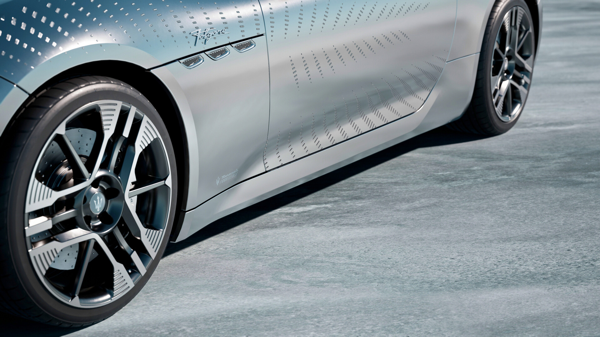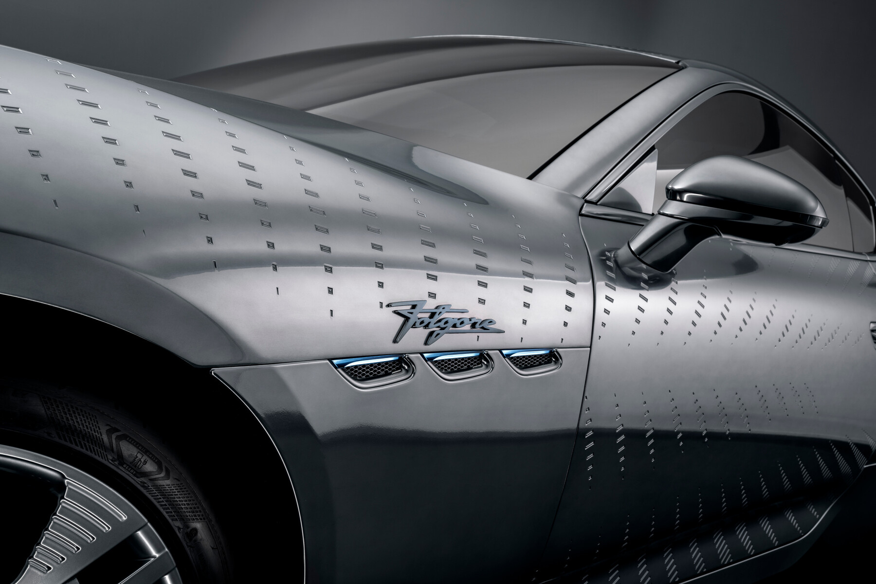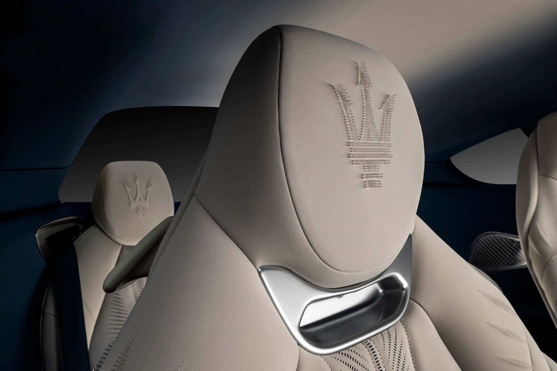 Der GranTurismo One Off Luce steht für Innovation und Nachhaltigkeit, ausgestattet mit einem vollelektrischen Folgore Antrieb, der die Experimentierfreude und ständige Forschung von Maserati widerspiegelt. das Styling des One Off Luce ist eine Interpretation eines Monolithen, in den ein dynamisches, lasergeätztes Muster eingraviert wurde. Das fast vollständige Fehlen von Farbe lässt die Konturen des Fahrzeugs mit seiner Umgebung verschmelzen. Im Innenraum verwendet Maserati regeneriertes Nylongarn Econyl, die monochromatische blaue Innenausstattung erinnert an das Meer, aus dem das nachhaltige Material stammt.