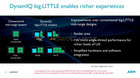 ARM verspricht für den Nachfolger des Cortex-A73 in etwa 20 Prozent mehr reale Performance, Benchmark-Ergebnisse sollen sogar noch mehr Fortschritt zeigen. In Verbindung mit dem Cortex-A55, dem Nachfolger des Haus-und-Hof-Prozessor Cortexs-A53, der heutzutage in so ziemlich jedem Mobilprozessor steckt, arbeitet der Cortex-A75 mit dynamischer Threadverteilung, ARM nennt das in den Folien DynamIQ big.LITTLE. Gerüchten zufolge wird Qualcomm im Snapdragon 845-SOC kommendes Jahr bereits auf den Cortex-A75 setzen.