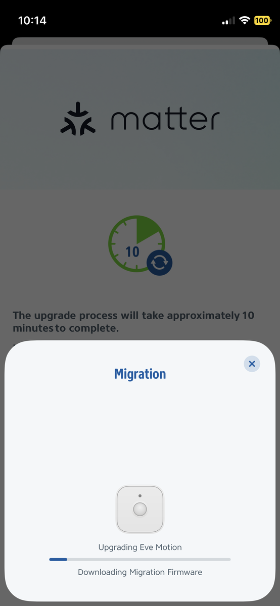 Die Migration auf Matter braucht bei Eve etwas Zeit und Konzentration. Zuerst muss die Eve-App in der Version 6.0 installiert werden. Rund zehn Minuten soll das pro Smarthome-Gerät dauern. Wir haben es aber in etwa fünf Minuten geschafft.