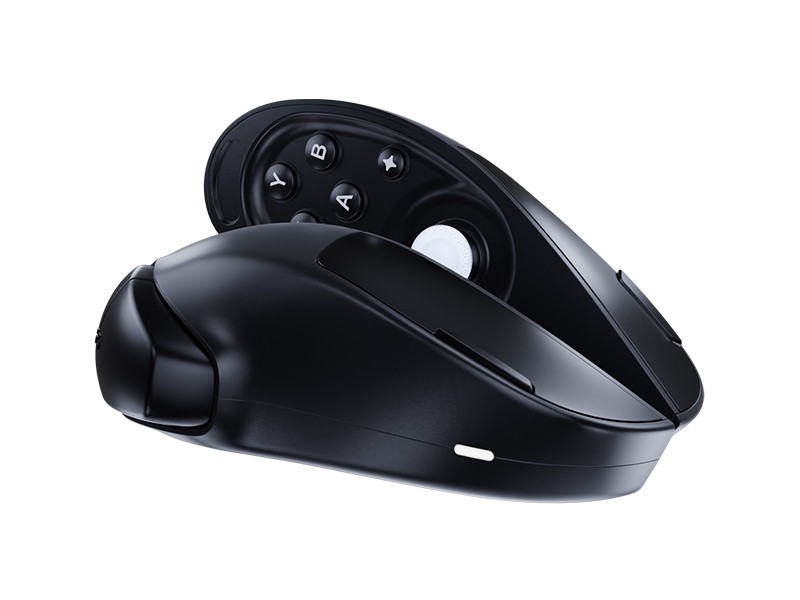 Durch das Lösen der Verbindung kann der Nutzer die Maus in zwei einzeln nutzbare Controller mit analogen Sticks, D-Pad, Schultertasten und Buttons splitten, die denen von Virtual-Reality-Brillen ähneln. Diese Steuereinheiten sind bei der Nutzung als Maus im Inneren verborgen. Der eine Controller ist dabei weiterhin auf der Unterseite mit dem optischen Maussensor (16k DPI optischer Sensor) ausgestattet, wodurch er auf einem Mousepad wie eine herkömmliche Gaming-Maus genutzt werden kann. Eine weitere Nutzungsart wäre es demnach, die linke Hälfte in der Hand als Steuerungscontroller zu nutzen, während man die rechte Seite wie eine Maus nutzt, ideal für First-Person-Shooter. Das erinnert an die Switch-2-Joycons oder die Controller des Lenovo Legion Go (2).