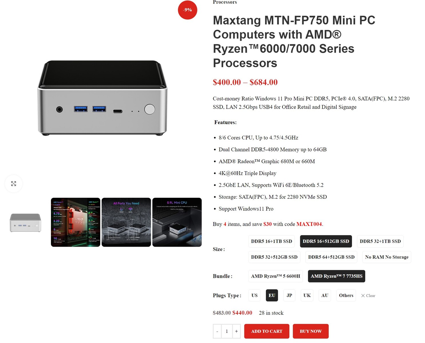 Maxtang ist ein chinesischer Systemhersteller, welcher spezielle Industrielösungen in Form von embedded-Systemen und auch Mini-PCs für den Office-Gebrauch vertreibt. Der Maxtang MTN-FP750, welchen wir uns in diesem Review widmen, kostet 440 US-Dollar. Verbaut ist hier ein AMD Ryzen 7 7735HS sowie 16 GB DDR5-RAM und eine 512-GB-SSD. Alternativ steht noch ein AMD Ryzen 5 6600H als Prozessor zur Verfügung. Des Weiteren lässt sich der Mini-PC mit mehr Arbeitsspeicher und einer größeren SSD bestellen. Auch eine Barebone-Option bietet Maxtang an, jedoch nur mit dem AMD Ryzen 7 7735HS.