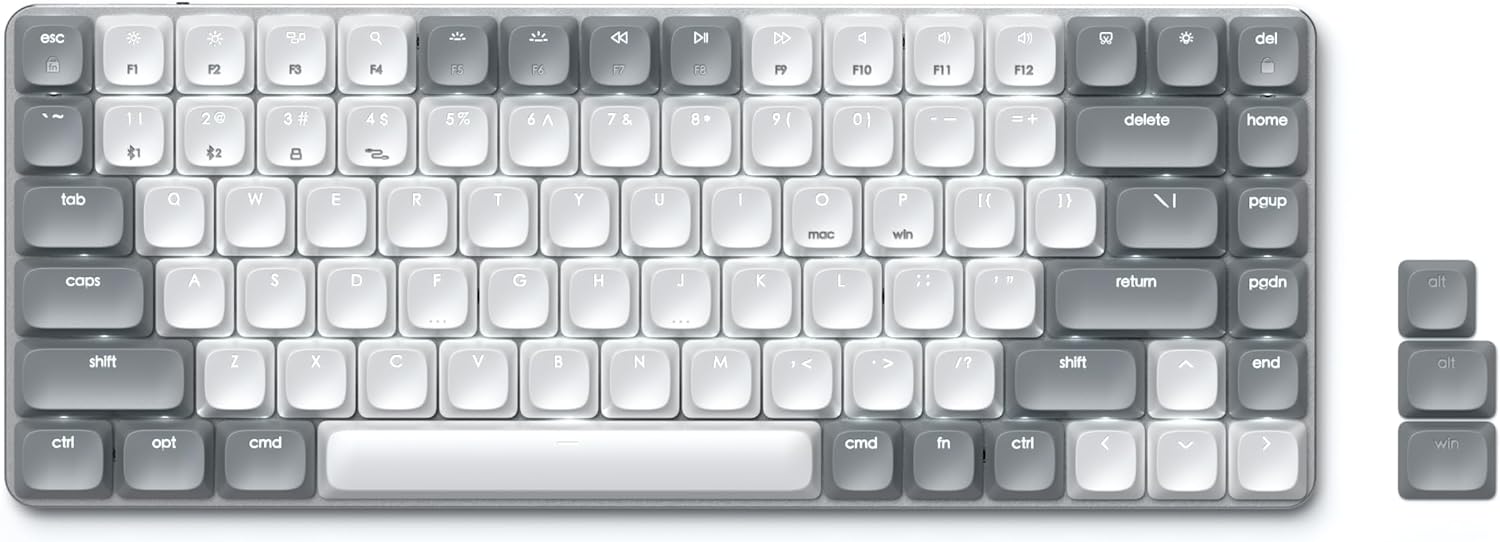 Die in Hellgrau und Weiß gehaltene Satechi SM1 ist eine mechanische Tastatur, die mit 84 Tasten mit abnehmbaren Tastenkappen sowie braunen Low-Profile-Schaltern ausgestattet ist. Dies soll für eine leichtgängige Bedienung sowie ein physisches Feedback sorgen. Die LED-Hintergrundbeleuchtung kann in drei Helligkeitsstufen sowie 14 anpassbaren Mustern eingestellt werden.