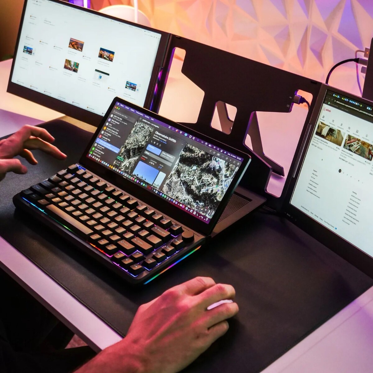 Zweitens besitzt die Tastatur einen 13 Zoll Touchscreen im 24:9-Format, der eine Auflösung von 1.920 x 720 Pixel, eine Bildfrequenz von 60 Hz und eine Helligkeit von 300 Nits erreicht, das IPS-Panel wird mit einer entspiegelten Oberfläche versehen. Der Winkel des Touchscreens kann von 0 bis 90 Grad frei angepasst werden. Laut Aura Displays ist dieser Touchscreen praktisch, um Bedienelemente von Profi-Apps, Widgets, einen Web-Browser oder eine Nachrichten-App wie Discord zu verwenden.