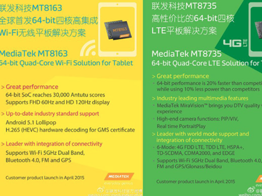 Mit dem MT8735 kündigte MediaTek außerdem einen weiteren Prozessor an, der 4G/ LTE Netzwerke unterstützt. Der Prozessor basiert ebenfalls wie der MT8163 auf der Cortex A53 CPU und unterstützt zusätzlich zu Dual-Band WiFi und Bluetooth 4.0 auch GPS/GLONASS/Beidou.