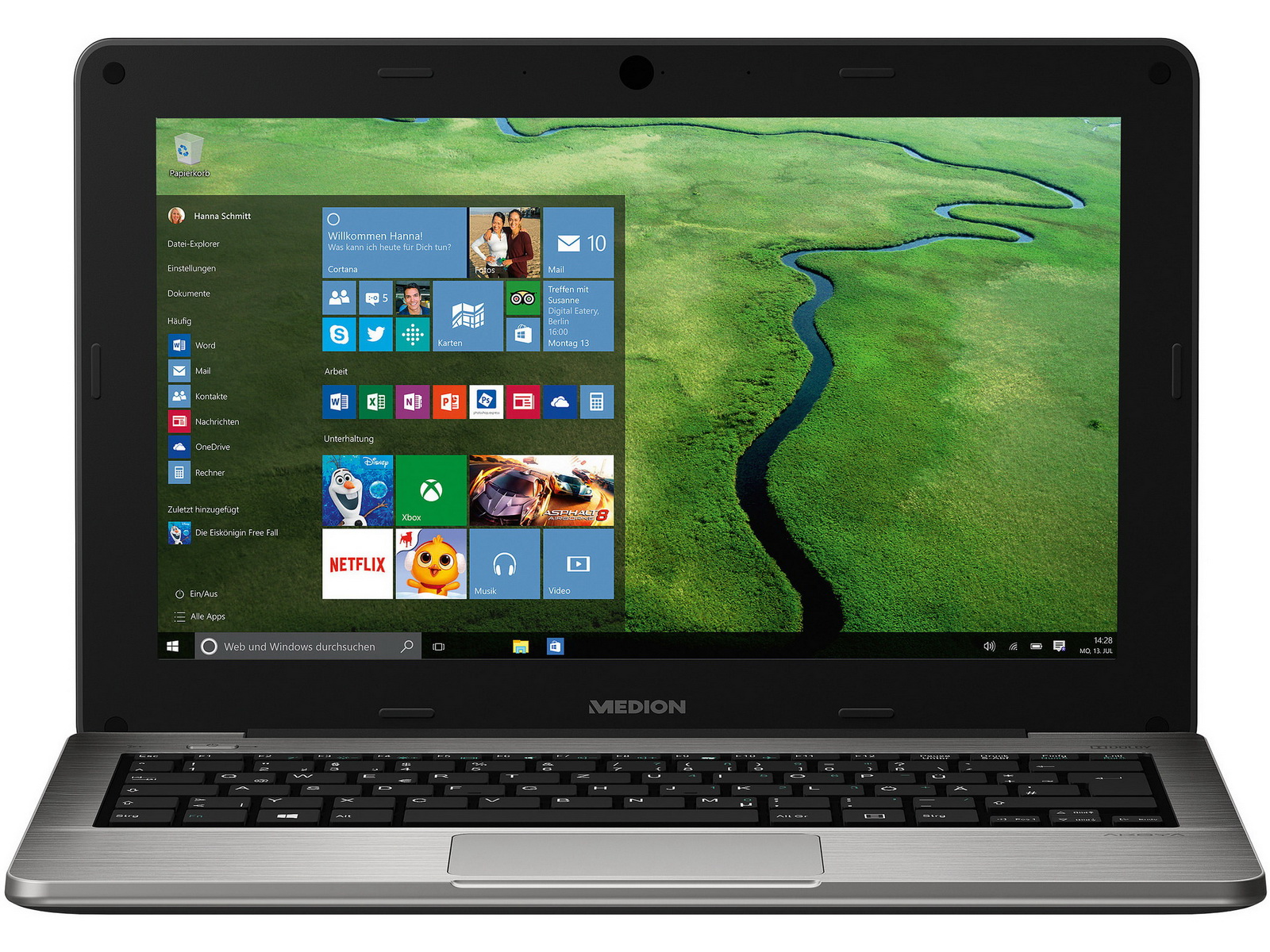 Für die Leistung des Akoya S2218 (MD 99590) Notebooks ist ein Intel Atom Z3735F mit bis zu 1,83 GHz und Intel HD Grafik sowie 2 GB Arbeitsspeicher verantwortlich. Das Starten von Apps und lokale Speichern von Daten geht dank dem eingebauten 64 GB großen Flashspeicher sehr flott. Der Systemspeicher lässt sich via einem integrierten Leser für microSD-Speicherkarten zudem erweitern.