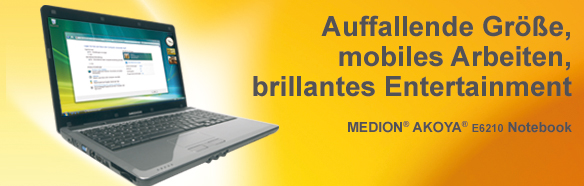 EN→DE Archive.org versionMedion's Akoya E6210 notebook, which is on sale in Aldi stores from Thursday 22 January, uses an Intel Pentium Dual T3400 processor, which runs at 2.16GHz, at its heart. That's not the fastest of processors but it is followed up with 3GB of memory which helps to even the balance. At £450 the E6210 is good value for undemanding users, but don't expect too much oomph from it.