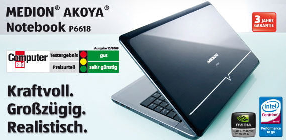 Archive.org versionFür 699 Euro ist das Medion Akoya P6618 ein Schnäppchen. Es ist flott beim Arbeiten und Spielen. Auch die Ausstattung kann sich sehen lassen: riesige Festplatte, viel Arbeitsspeicher, schnelles WLAN und viel Software. Prima für unterwegs: Das Gerät ist robust, und der entspiegelte Bildschirm verhindert lästige Reflexionen.