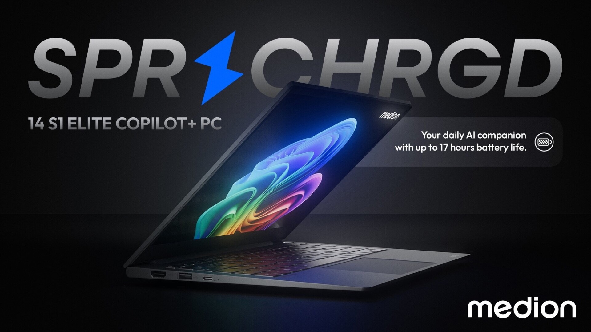 Ein Highlight der Ausstattung ist das 14 Zoll IPS-Panel im 16:10-Format, das eine Auflösung von 2.880 x 1.800 Pixel, eine Bildfrequenz von 120 Hz und eine Helligkeit von 400 Nits erzielt. Eine 1.080p-Webcam, ein integrierter Fingerabdrucksensor und Support für die neuesten Copilot+ AI-Features von Windows 11 runden die Ausstattung ab. Neben USB-C 4.0 besitzt das Medion S1 Elite auch zweimal USB-A, HDMI und einen 3,5 mm Kopfhöreranschluss.