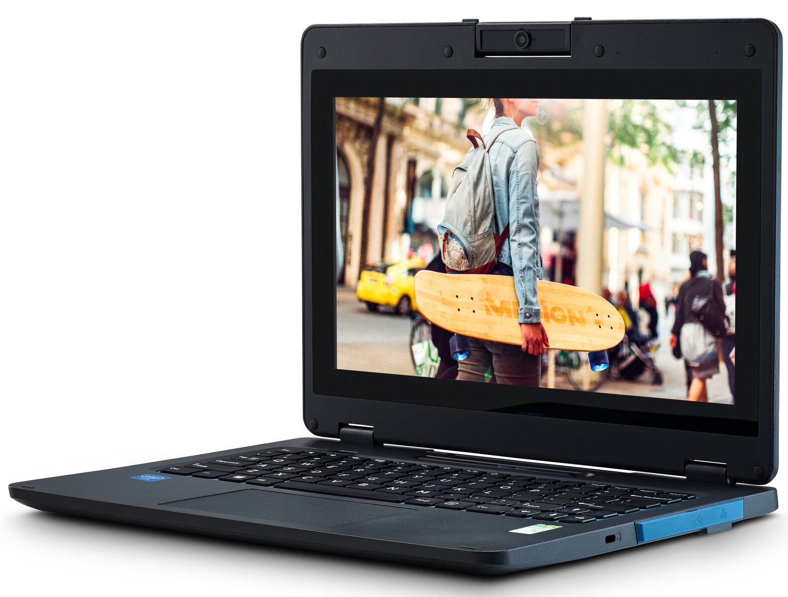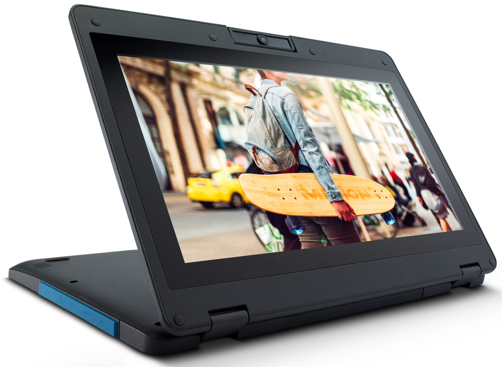 Drehbare Webcam: Die Kamera des Medion Akoya E11203 wechselt im Handumdrehen die Perspektive, um beispielsweise den Mitschülern physische Projekte wie Bilder oder Modelle zu zeigen. Das Convertible ist mit robusten Ports sowie einer Antirutsch-Lösung ausgestattet, besitzt einen IP52-Staub- und Wasserschutz und übersteht Stürze aus einer Höhe von bis zu 76 cm. Ein LED-Indikator zeigt Lehrern außerdem an, ob Convertible und WLAN eingeschaltet sind. Das Medion Akoya E11203 ist ab sofort für 438,61 Euro verfügbar.