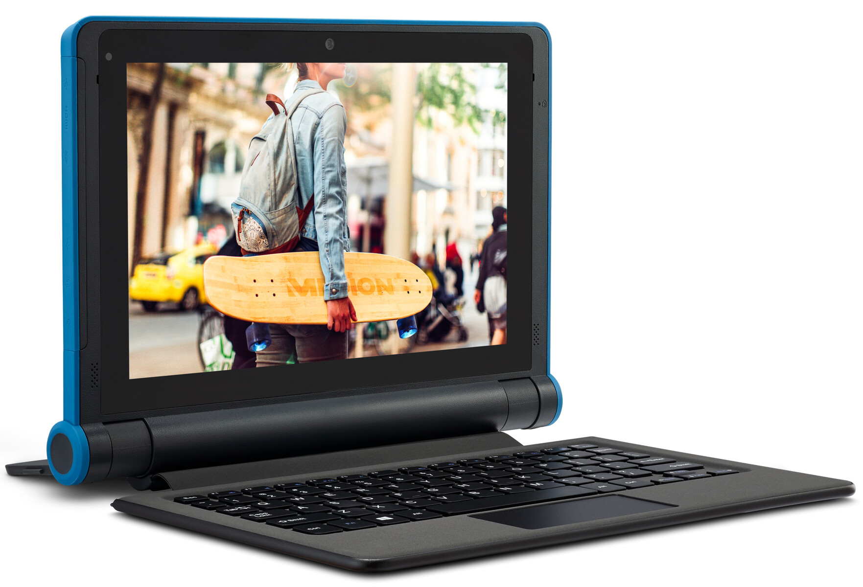 Das E10201 wurde laut Medion speziell für die Bedürfnisse von Kindern im Vor- und Grundschulalter konzipiert, angefangen vom Design über die Funktionalität bis hin zur Robustheit. Das 2-in-1-Laptop besitzt eine abnehmbare Tastatur, ein 10,1-Zoll-Touchdisplay, das sich mit einem einzigen Handgriff zum Tablet umfunktionieren lässt sowie einen Active Pen, der Schreibübungen auf dem E10201 erlaubt.