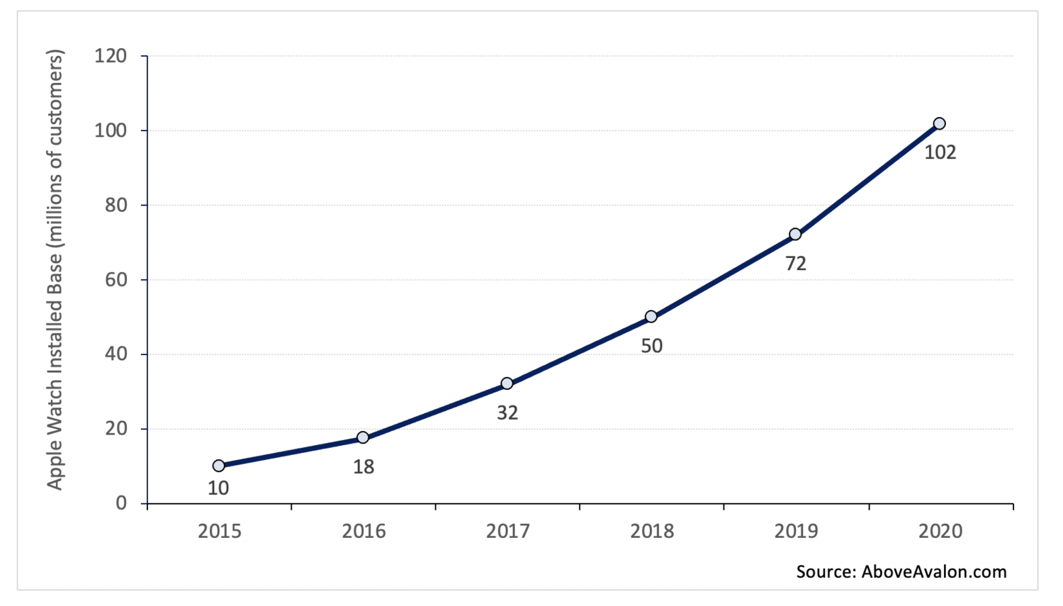 Die Analysten von Above Avalon haben einen Bericht veröffentlicht, in dem angegeben wird, dass mittlerweile rund 102 Millionen Menschen eine Apple Watch (ab 270 Euro auf Amazon) nutzen. Alleine im vergangenen Jahr ist die Nutzerbasis um 30 Millionen Menschen gewachsen – ein eindrucksvoller Erfolg, nachdem Apple anfangs ganze drei Jahre benötigt hat, um 30 Millionen Smartwatches zu verkaufen.