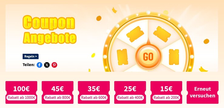 Neben Preisreduzierungen und Coupons beschert der große Mega Juni Sale von Geekmaxi noch viele weitere Vorteile und Aktionen. So gibt es beispielsweise bis 22. Juni ein Glücksrad, bei dem es exklusive Coupons zu gewinnen gibt. Jeder Nutzer hat bis zu vier Chancen täglich, um den Hauptpreis von 100 Euro Rabatt oder einen der vielen weiteren Gewinne abzusahnen.