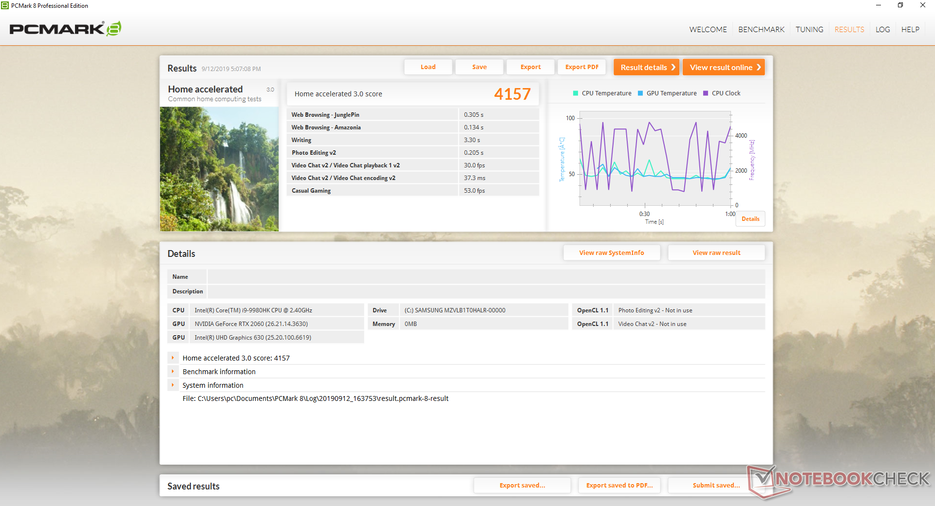 | Asus ZenBook Pro Duo UX581GV i9-9980HK, GeForce RTX 2060 Mobile, Samsung SSD PM981 MZVLB1T0HALR, OLED, 3840x2160, 15.6" | Asus ZenBook Pro 15 UX580GE i9-8950HK, GeForce GTX 1050 Ti Mobile, Samsung SSD PM961 1TB M.2 PCIe 3.0 x4 NVMe (MZVLW1T0), IPS, 3840x2160, 15.6" | Asus ZenBook 15 UX533FD i7-8565U, GeForce GTX 1050 Max-Q, WDC PC SN520 SDAPNUW-512G, IPS, 1920x1080, 15.6" | Dell XPS 15 7590 9980HK GTX 1650 i9-9980HK, GeForce GTX 1650 Mobile, Toshiba XG6 KXG60ZNV1T02, OLED, 3840x2160, 15.6" | Asus Strix Scar III G531GW i9-9880H, GeForce RTX 2070 Mobile, Intel SSD 660p 1TB SSDPEKNW010T8, IPS, 1920x1080, 15.6" | HP Omen X 2S 15-dg0075cl i7-9750H, GeForce RTX 2070 Max-Q, WDC PC SN720 SDAPNTW-1T00, IPS, 1920x1080, 15.6" | |