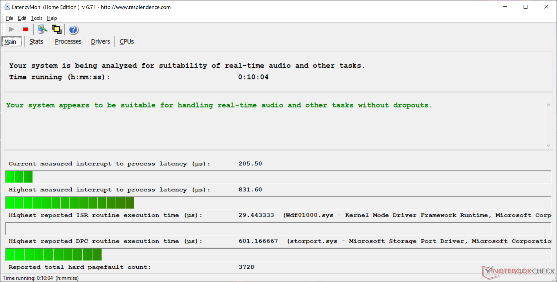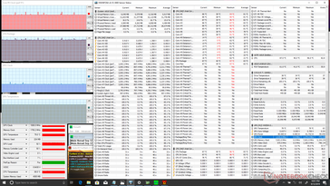 Wir lasten das System künstlich aus, um es auf potenzielles Drosseln zu prüfen. Im Standardlüftermodus Auto pendeln sich die Taktfrequenz und Kerntemperatur während Prime95 bei 2,9 GHz bzw. 76 °C ein. Im Turbo-Lüftermodus steigen diese Werte auf konstante ~3,6 GHz und 91 °C, wodurch der Laptop sowohl schneller als auch wärmer wird. Wenn man häufig Kodierungsaufgaben und andere CPU-lastige Arbeiten erledigt, empfehlen wir die Aktivierung des Turbo-Lüftermodus, um der CPU ihr maximales Potenzial zu entlocken. Beim Ausführen von The Witcher 3 oder Prime95 zusammen mit FurMark erreichen CPU und GPU jeweils 87 °C bzw. 79 °C und damit etwas höhere Temperaturen als das Razer Blade 15 und das ZenBook Pro 15 UX580 aus dem letzten Jahr.