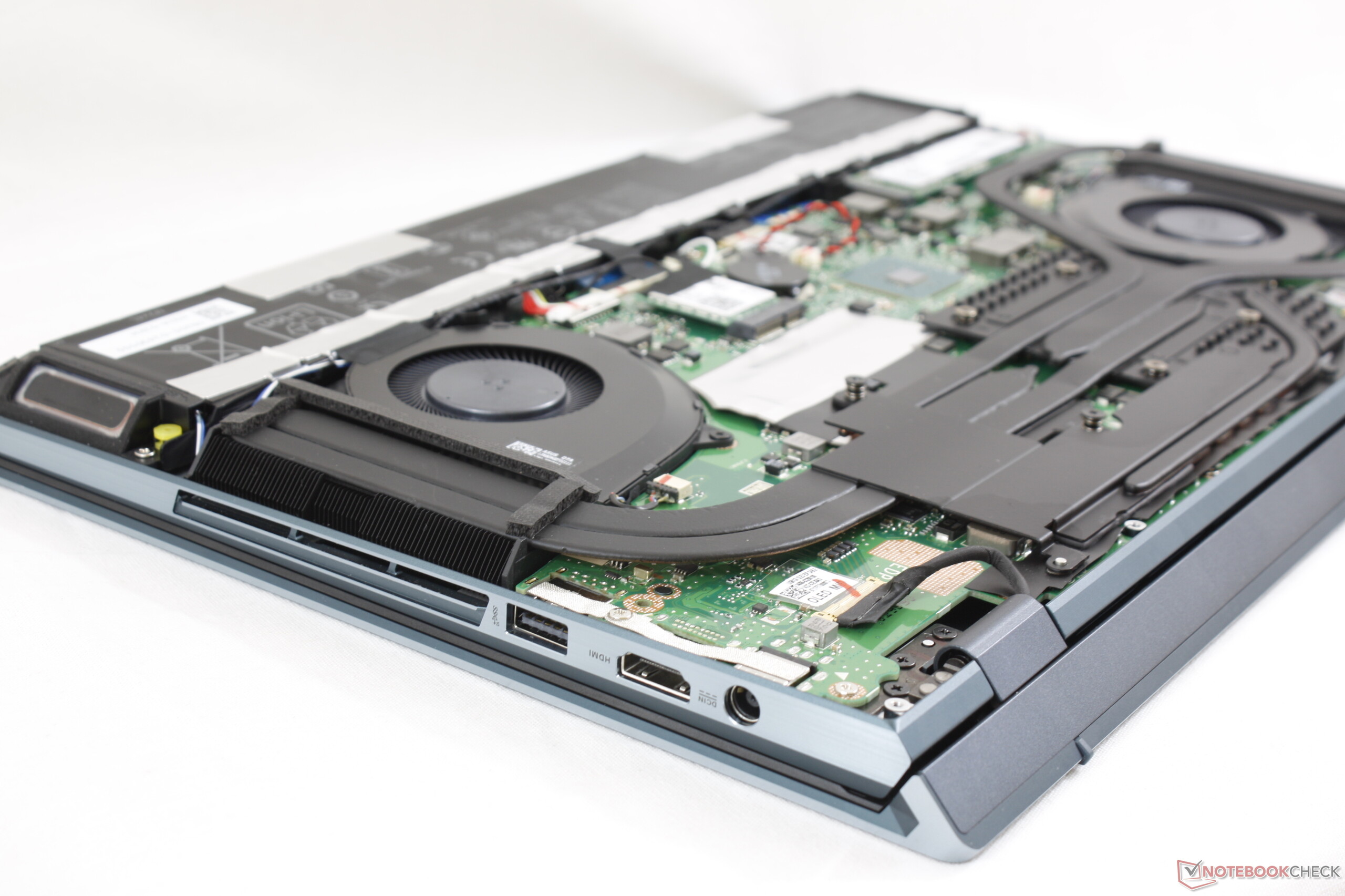 Im Inneren können das WLAN-Modul und die M.2-2280-SSD ausgetauscht werden. Der Arbeitsspeicher ist verlötet und der schlanke Akku unerwartet klein.