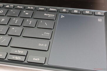 Die Tippgeräusche der eingebauten Maustasten sind relativ leise, der Tastenhub ist gering und das gebotene Tasten-Feedback moderat. Multi-Touch-Gesten gelingen nicht so genau wie zum Beispiel mit den dedizierten Maustasten des GX501. Für schnelle Zahleneingaben steht hier wie beim UX533 ein virtueller Ziffernblock zur Verfügung. Wenn man viel mit dem Ziffernblock arbeitet, ist eine günstige USB-Lösung jedoch trotzdem die bessere Wahl.