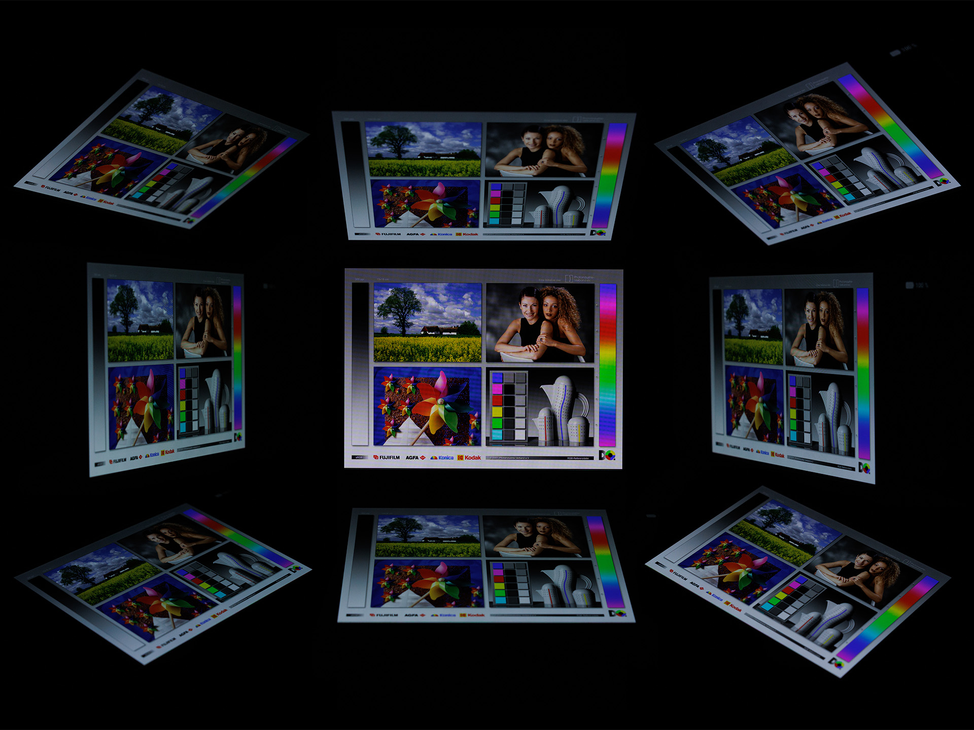 | Helligkeit Bildmitte (cd/m²) | 1574 | 1105 -30% | 1041 -34% | 2161 37% | 1054 -33% | 1357 -14% |