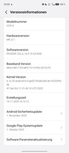 Das Vivo X300 Pro wird mit Google Android 16 und der eigenen Benutzeroberfläche OriginOS 6 ausgeliefert. Die Sicherheitspatches sind zum Zeitpunkt des Tests aktuell und sollen für sieben Jahre (ab Markteinführung) verteilt werden. Über die Intervalle macht Vivo keine Angaben. Major-Updates von Android sollen für fünf Jahre bereitgestellt werden.
