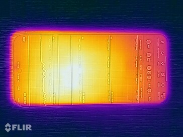 (±) Auf der Unterseite messen wir eine maximalen Wert von 44.5 °C (im Vergleich zum Durchschnitt von 34 °C).