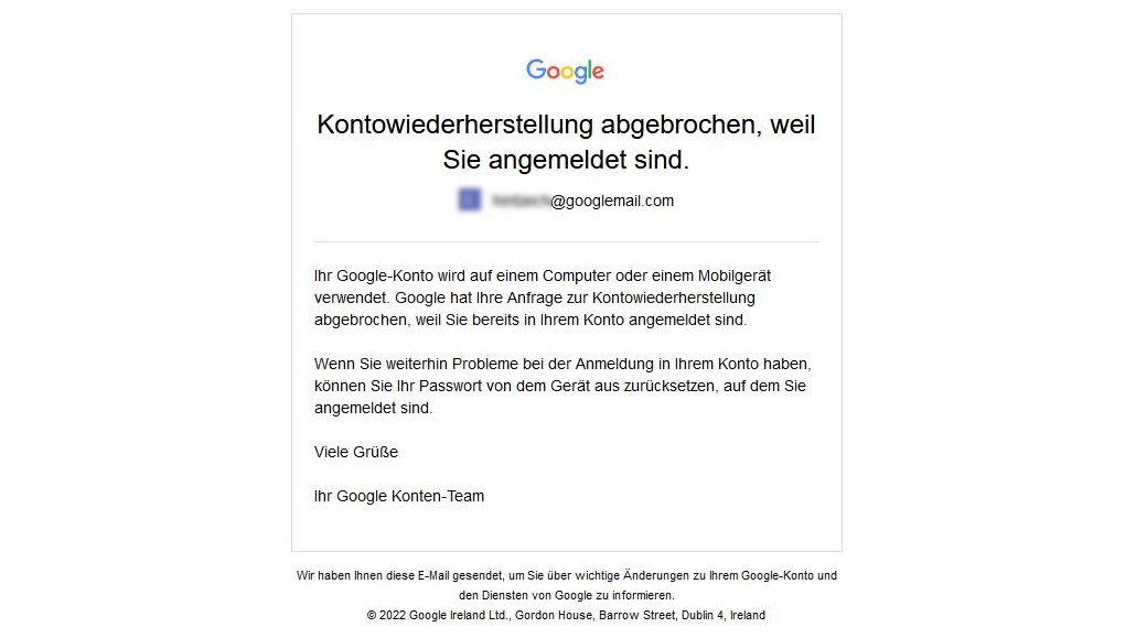 Und es wurde noch absurder, denn weil ich auf dem Smartphone noch eingeloggt war, bekam ich in meinem Gmail-Account etwas später die Nachricht, dass die 48-Stunden-Wartezeit abgebrochen werden, da ich ja offenbar geschafft hätte mich anzumelden. Super, dachte ich, dann sollte es jetzt klappen. Aber Pustekuchen! Auf dem Desktop wurde ich weiterhin ausgesperrt.