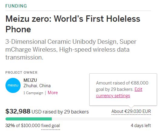 Es sieht schlecht aus für das Meizu Zero. Nach der Präsentation Ende Januar wurde das komplett Button- und Portfreie Smartphone aus China wenig später auf Indiegogo zum Crowdfunding freigegeben - um umgerechnet knapp 1.1150 Euro. Als selbsternanntes Ziel wurden 100.000 US-Dollar gewählt, vier Tage vor dem Ende der einmonatigen Laufzeit wurde dafür gerade mal etwas weniger als ein Drittel eingespielt: Eigentlich ein vernichtendes Urteil der Tech-Gemeinde - für den Preis will offenbar niemand Meizu unterstützen, das Projekt steht wohl praktisch vor dem Aus. Vielleicht liegt das auch daran, dass Meizu hier noch einen Snapdragon 845 vorsieht.