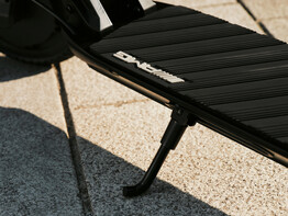 Die 13,2 Zentimeter breite Trittfläche des AMG-Scooters ist mit einer Antirutsch-Beschichtung bezogen und und markentypischen AMG-Rauten verziert. Auf der Straße rollt der Elektro-Scooter mit 20-cm-Gummirädern, die Federung des Lifestyle-E-Scooters lässt sich hinten und vorne einstellen. Für unterschiedliche Körpergrößen bietet die Lenkstange mit AMG-Logos und mittig platziertem Fahrdisplay (Geschwindigkeit, Ladezustand und Fahrmodus) eine Teleskopfunktion.