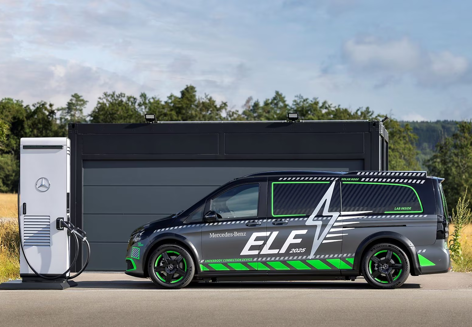 Mercedes-Benz ELF: E-Auto-Labor testet 1-MW-Laden, bidirektionales Laden (Stromabgabe ans Netz) und kabellose, induktive 11-kW-Ladetechnik